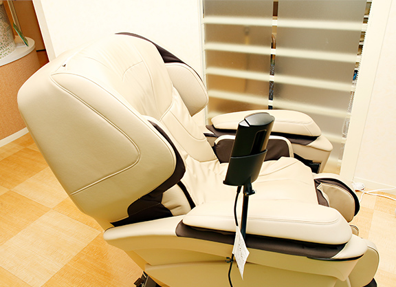診療前後の緊張を少しでもほぐしていただけるよう、待合室にマッサージチェアを用意しております。
